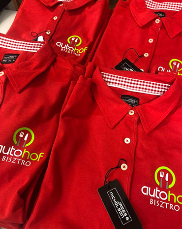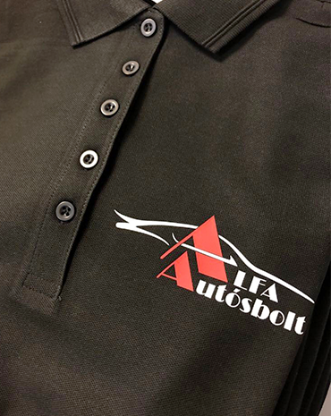 Pique pólók készültek a bolt dolgozóinak strapabíró nyomtatással.