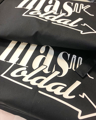 Kötényeket nyomtattunk fekete alapon fehér színnel.